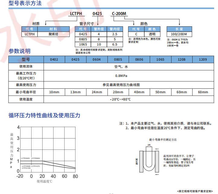 特点:具有良好的耐低温性能、化学稳定性、耐大多数的酸碱的侵蚀,室温下盐碱、氢氟酸、磷酸、甲酸,氨类、氢氧化钠、氢氧化钾等各种化学物质侵袭,耐水解、耐油、符合FDA食品级要求,可用于食品、医疗,半导体设备等,本产品特别适用于电解液、氮气和纯水。