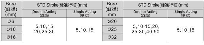 2.适合缸径: Φ6,Φ10,Φ16,Φ20,Φ25,Φ32